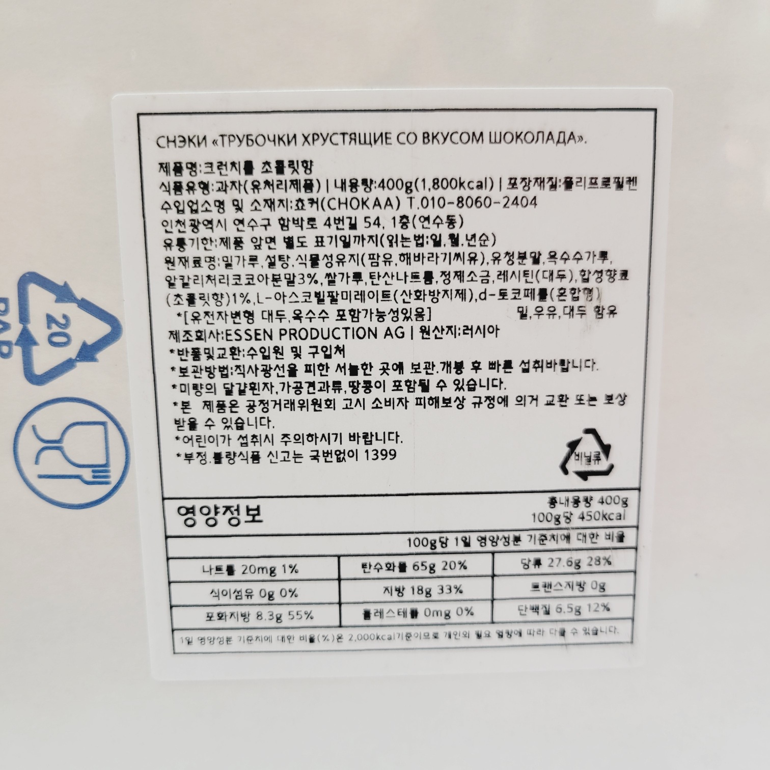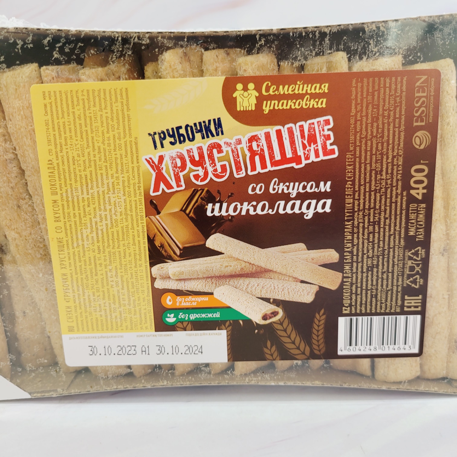 [014643] Трубочки хрустящие со вкусом шоколада 400g