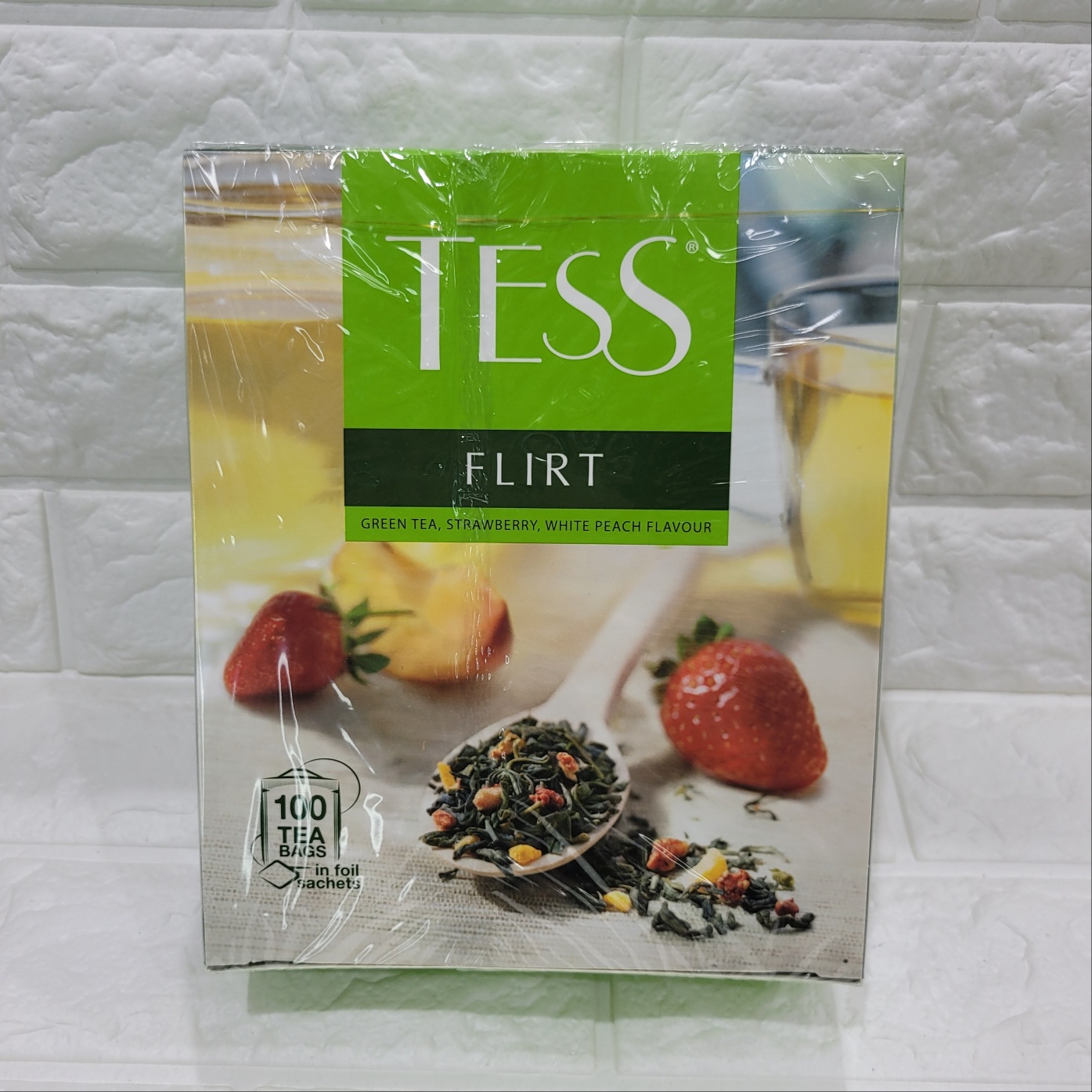 [014765] ТЕСС Чай зеленый с клубникой и кусочками белого персика "FLIRT" 100пак. 150g