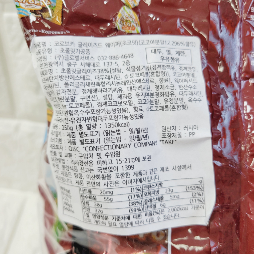 [712557] 코로브카 글레이즈드 초코맛 웨이퍼 250g