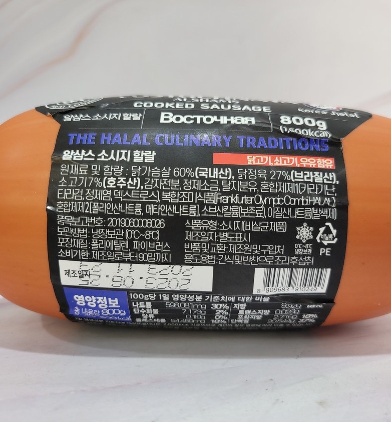 [810249] РОЯЛ ФУД ХАЛЯЛЬ Колбаса вареная "Восточная" 800g