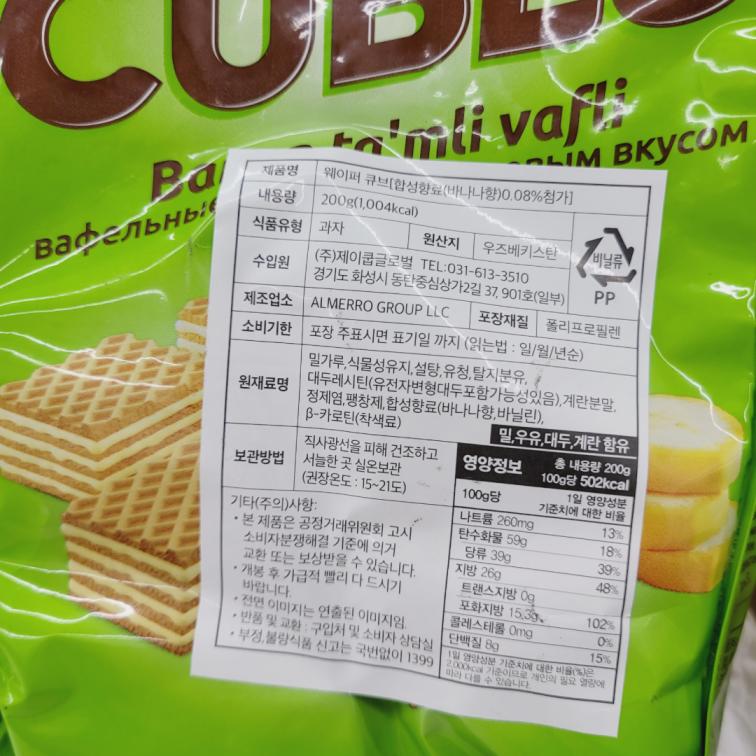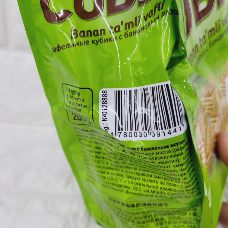 [391441] Вафельные кубики с банановым вкусом 200g