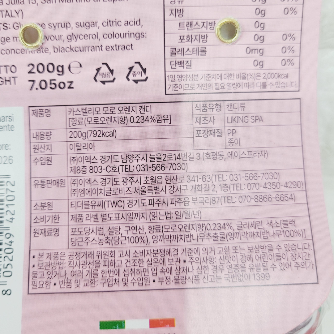 [421072] 카스텔리모 모로 오렌지 캔디 200g